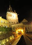 Hodinová věž s hlavní bránou do městského opevnění. Bohužel teď v noci se na ochoz a orloj zase nepodívám.