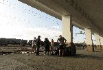 Po čtvrtej ráno na Aradským nádraží po zážitku, kdy si Andy ustlal ve vagónu v uličce mezi sedačkama a Kubík ho stihl poblejt. Proto má Andy tu sukýnku, co mu zapůkjčila Špulka. Chápu Andyho, že Aradský nádraží nepoznává. Já jsem z toho byl naposled taky v šoku. Na spoj do Timišoáry máme cirka tři hodiny. Krámy jsou ještě zavřený. Nakonec jsme se přemiklikovali před nádraží na lavičky. Tak jsem si u jednej roztáhl karimatku a chtěl dospávat, ale po chvilce tu byl nějakej hlídač ...nemá cenu odporovat, dospím to vsedě. Holt, jak rumun dostane funkci, tak je hrozně důležitej.