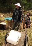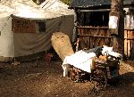 V šerifárně jsme už včera zakoupili clajmy, něco vyrýžovali a zakoupili další clajmy, které si teď jdeme přes indiánské tábořiště vyznačit na nalezištích zlata na Hořina river.